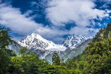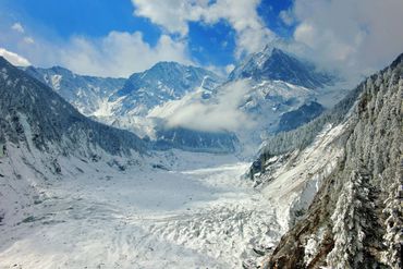 While most glaciers in the world are located at higher elevations, glaciers can be seen descending from steep canyons at lower elevations in Hailuogou. This is especially true of the world's largest and most unique glacier, the Great Icefall, which is more than 1,000 meters high and 1,100 meters wide, 10% larger than the famous Huangguoshu Falls. It is a magnificent sight to behold.