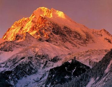 Hailuogou is located at the foot of a mountain, surrounded by 45 Weishi peaks over 6000 meters above sea level, on which snow has accumulated for thousands of years and silver light shines. Whenever the weather is clear and the east is white, the brilliant glow of the sun rises, and thousands of golden lights shine straight from the long sky to the Weishi Peak. In an instant, all the dozens of snow-capped peaks are covered with a layer of golden, dazzling light, radiant and magnificent, which is the famous "Sunshine Mountain". ".