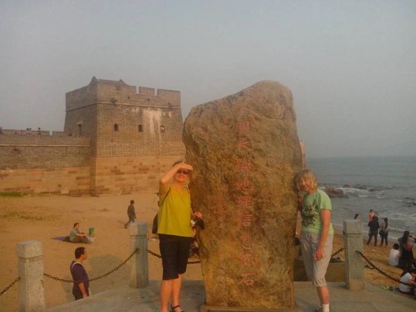 Walk 4 hours at Jiaoshan (Horn Mountain), the first actual mountain the Great Wall passes heading west. Its peak is a flat item, can sit hundreds of people, there are huge boulders sagging, as if a dragon head wears horns and so the name. Stay in the same ancient town hotel at Shanhaiguan.