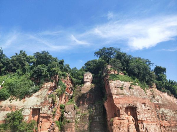 Hongya to Leshan. It is another day of varied scenery on a small road, with views alternating from the river and its cliffs to terraced tea plantations and dense forestry. Meet Sichuan Hand Made Paper Museum and the Thousand Buddha Cliff alongside the Qingyi River. End by Leshan, home of the largest and tallest carved stone Buddha in the world. 64 km of cycling.