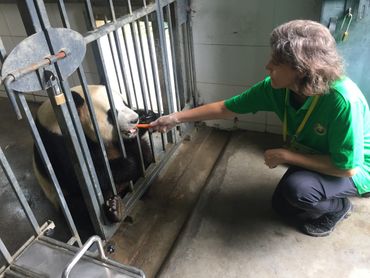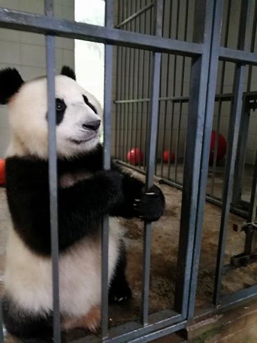 *Clean the panda’s enclosure and playground, such as sweeping up leftover bamboo leaves, washing the floor of their rooms, and sometimes shoveling their poops.