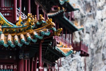 The Hanging Temple, also Hanging Monastery or Xuankong Temple is a temple built into a cliff. Along with the Yungang Grottoes, the Hanging Temple is one of the main tourist attractions and historical sites in the Datong area. Built more than 1,500 years ago, this temple is notable not only for its location on a sheer precipice but also because it is the only existing temple with the combination of three Chinese traditional religions: Buddhism, Taoism, and Confucianism. The structure is kept in place with oak crossbeams fitted into holes chiseled into the cliffs. The main supportive structure is hidden inside the bedrock.[1] The monastery is located in the small canyon basin, and the body of the building hangs from the middle of the cliff under the prominent summit, protecting the temple from rain erosion and sunlight. Coupled with the repair of the dynasties, the color tattoo in the temple is relatively well preserved.
